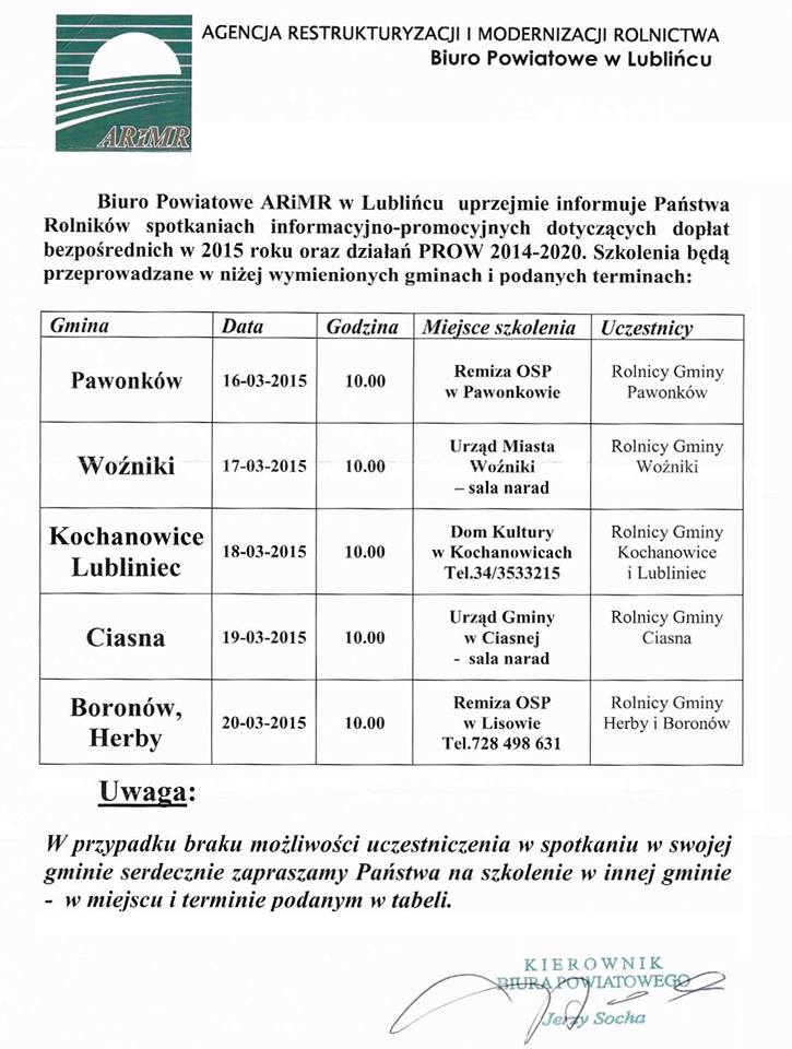 Szkolenie dla rolników admin 14 marca 2015 14 marca 2015 Możliwość komentowania Szkolenie dla rolników została wyłączona